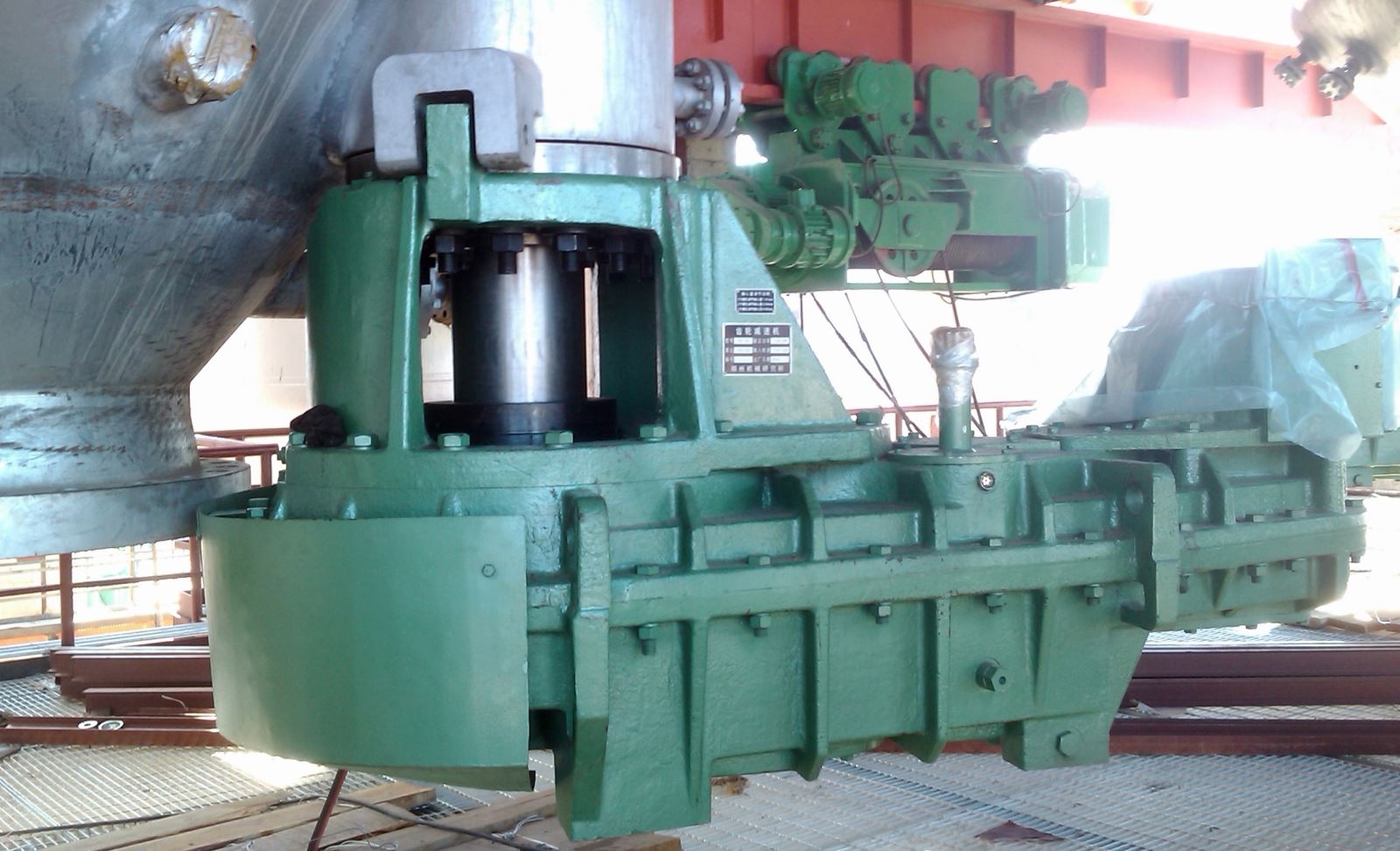 海洋鉆井平臺(tái)齒輪傳動(dòng)裝置,2004年取得了ABS和CCS船檢證書(shū),先后為原北方鉆井公司“渤海8號(hào)”、原南方鉆井公司“南海1號(hào)”及“南海4號(hào)”等平臺(tái)開(kāi)發(fā)生產(chǎn)了升降傳動(dòng)裝置和海水泵塔等,2011年為武漢船用機(jī)械有限公司配套研制生產(chǎn)了“自升式海洋鉆井平臺(tái)提升裝置”。